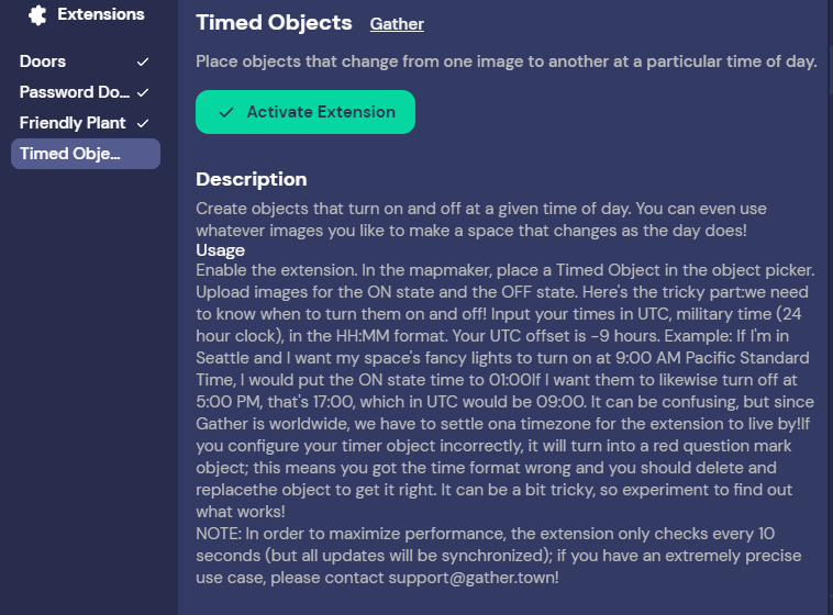 Edit in Mapmaker에 들어가서 Extension Settings > Friendly Plant / Timed Objects를 활성화시킵니다.