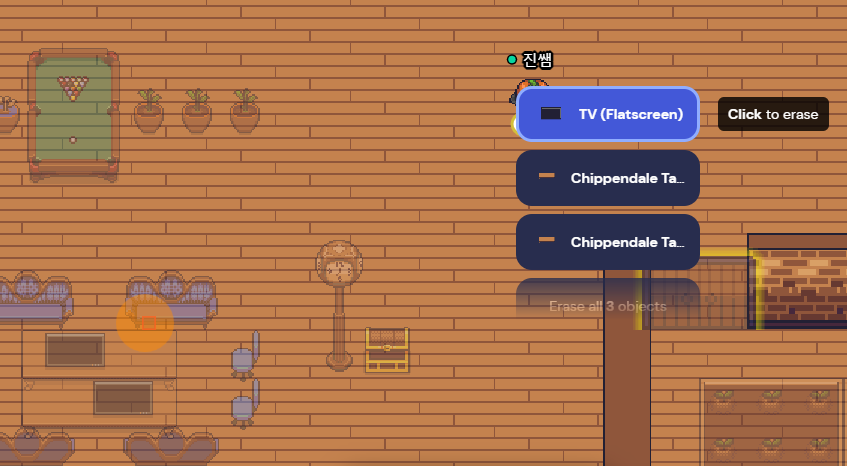 위의 사진에서 주황색 동그라미 부분을 지우려고 하면, 그 곳에 있는 여러개의 오브젝트가 선택지로 나옵니다.