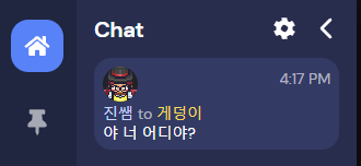 참가자 목록에서 게덩이를 클릭했더니 Message를 쓸 수 있는 칸이 있죠?