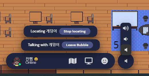 오늘은 다른 유저의 위치를 찾는 방법(locate on map)과 그 유저에게 자동으로 가는 방법(follow), 유저의 목소리를 멀리서 들을 수 있게 조정하는 Spotlight, 다수의 인원 사이에서 귓속말처럼 할 수 있는 버블 대화 모드에 대해 배웠습니다.