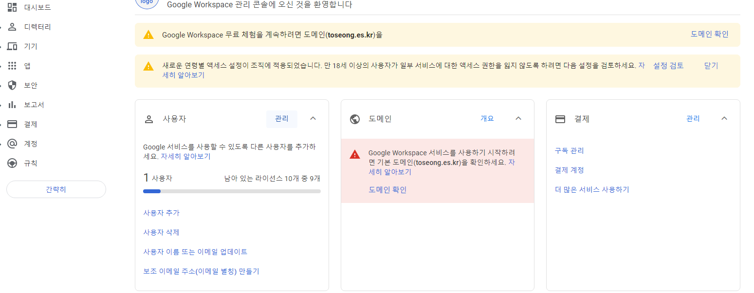 지난시간에 구글 워크스페이스 for education 계정을 한번 만들어보았습니다.