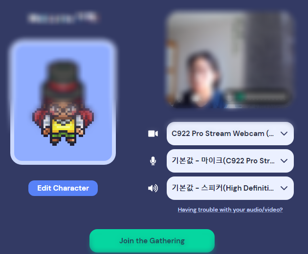 원한다면 캐릭터 편집 후 마이크 / 스피커 / 카메라 확인 후 입장하겠습니다.