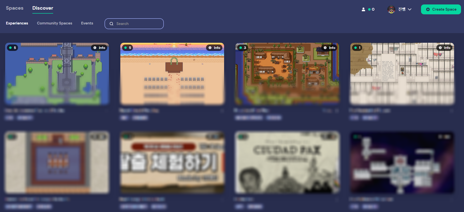 Discover안에서는 Experiences / Community Spaces / Events 로 카테고리가 나뉩니다.