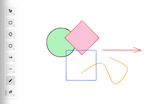 캔버스는 위와 같이 여러 가지 도형과 화살표, 직선, 곡선, 자유 그리기, 텍스트 등이 가능합니다.