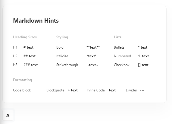 노트 왼쪽아래에 A에 마우스를 올리면 노트를 사용하는 팁이 나옵니다.