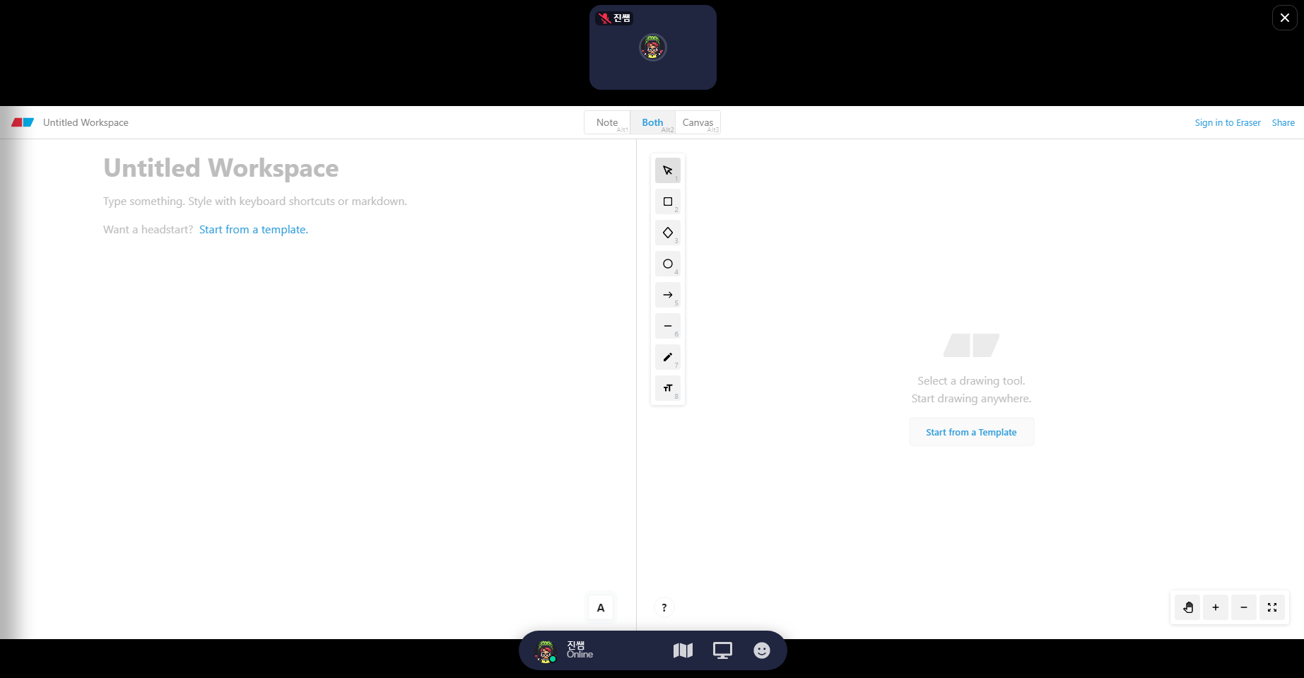 화이트보드에 연동된 Eraser를 활성화 시키기 위해서 단축키 X를 눌러보겠습니다.